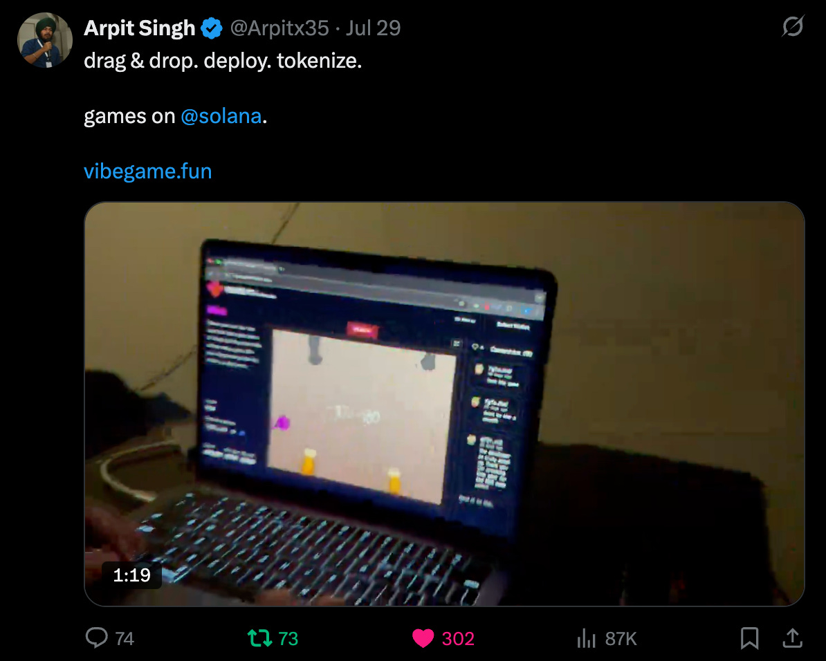 Arpit and the Send Arcade folks launched Vibegame — a drag and drop platform to deploy and launch onchain games
