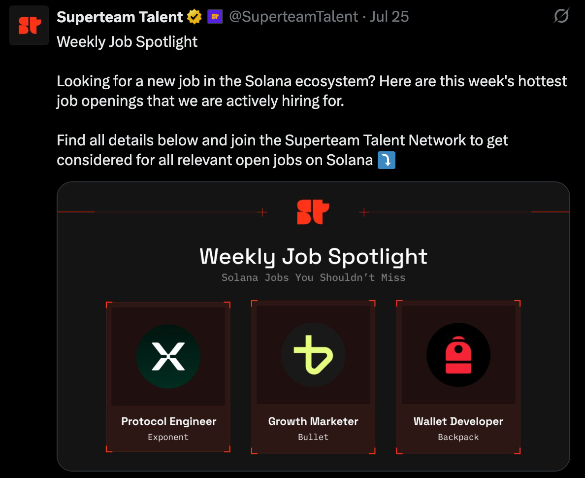 And if you're looking for more full-time job opportunities in the Solana ecosystem, head over to Superteam Talent and find your next thing at some of the hottest startups around.