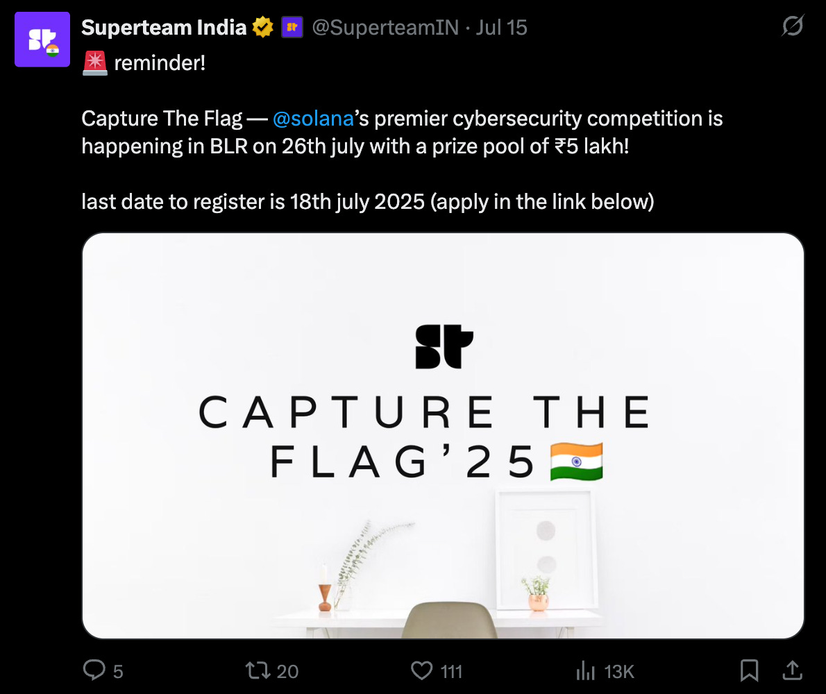 Members shipping code and content, co-working IRL, launching projects, crossing milestones, and more during the entire month. So grab a coffee and clear out your Sunday evening to read about the top updates from the Superteam India community in July 2025. We've got: